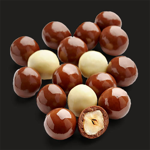 Características: en los pralinés, la proporción estándar de frutos secos y azúcar es del 50% respectivamente. Estos porcentajes los podemos variar para ajustarnos a las preferencias de cada cliente.